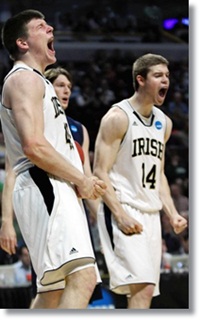 Irish freshman Pat Connaughton was also huge, knocking down several key 3 pointers, mostly with the shot clock under 3 seconds to help Notre Dame take control early. Syracuse was led by James Southerland’s 15 pts, Dion Waiters’ 11 pts, and Kris Joseph with 12 points and 5 rebounds, but the Orange shot just 34% from the field. Back-courtmates Scoop Jardine and Brandon Triche combined for only 8 points and 8 assists. Notre Dame’s Jerian Grant, older brother of future Syracuse commit Jerami Grant, also was key, chipping in 11 points and 6 assists.