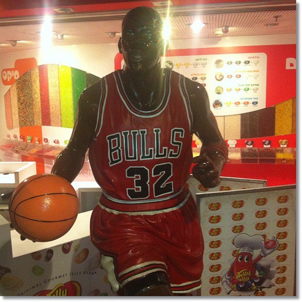 But in a recent pic snapped by former Wichita State standout Ramon Clemente, currently playing for Maccabi Ashdod B.C. in Europe, we find out that owners of a candy shop in Isreal are a little confused by what number jersey MJ wore during his playing career. Can you say epic fail!