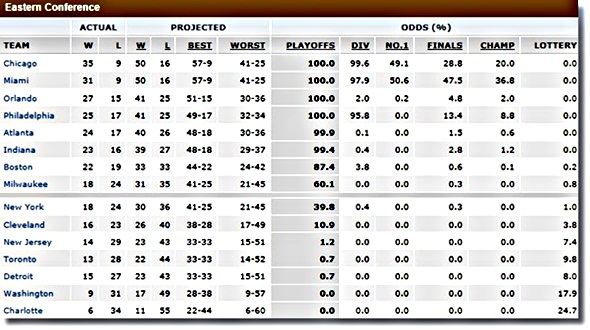 While it isn’t hard to imagine Chicago, Miami, and OKC winding up with the best overall record, one might be surprised to see which teams are projected to make the Playoffs as well as who has the best chance to take home the Title.