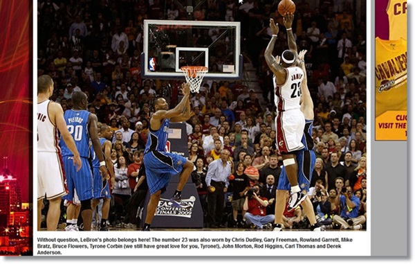 Under the photo of Corbin was a description, listing other lesser well known Cavs like Chris Dudley, Gary Freeman, Rowland Garrett, Mike Bratz, Bruce Flowers, John Morton, Rod Higgins, Carl Thomas, Derek Anderson, and Lebron James.   What?