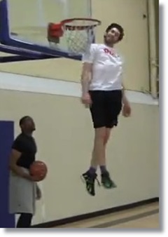 This Summer, Trew played on a team sponsored by rapper “The Game” called the Money Gang and regularly threw down some of the most vicious, high flying dunks we’ve seen all Summer, where he has to duck his head, so not to hit his head on the rim.