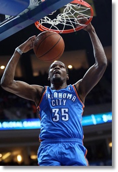 While the Thunder will next take on the undermanned Philadelphia 76ers this Tuesday from the United Kingdom, all everyone kept talking about, besides Kendrick Perkins’ grotesquely dislocated ring finger, was Durant’s vicious dunk from the left elbow, that brought back memories of Dr. J’s and Michael Jordan’s legendary free throw line dunk from way back…….