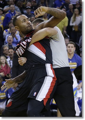 But every now and then emotions boil over in the heat of battle, tensions erupt, elbows are thrown and benches clear, as was the case when Warriors center Andrew Bogut got into a heated exchange with Blazers big man Joel Freeland, that led to a near full out brawl.